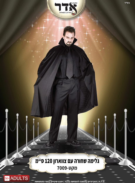 גלימה ערפד מבוגרים שחור 120 ס"מ