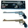 אקדח פיסטול שחור לפיקות; ידית כתומה