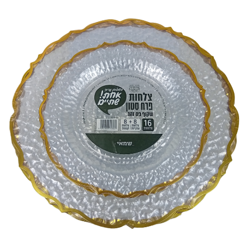 סט 16 צלחות "פרח סטון" שקופות עם פס זהב